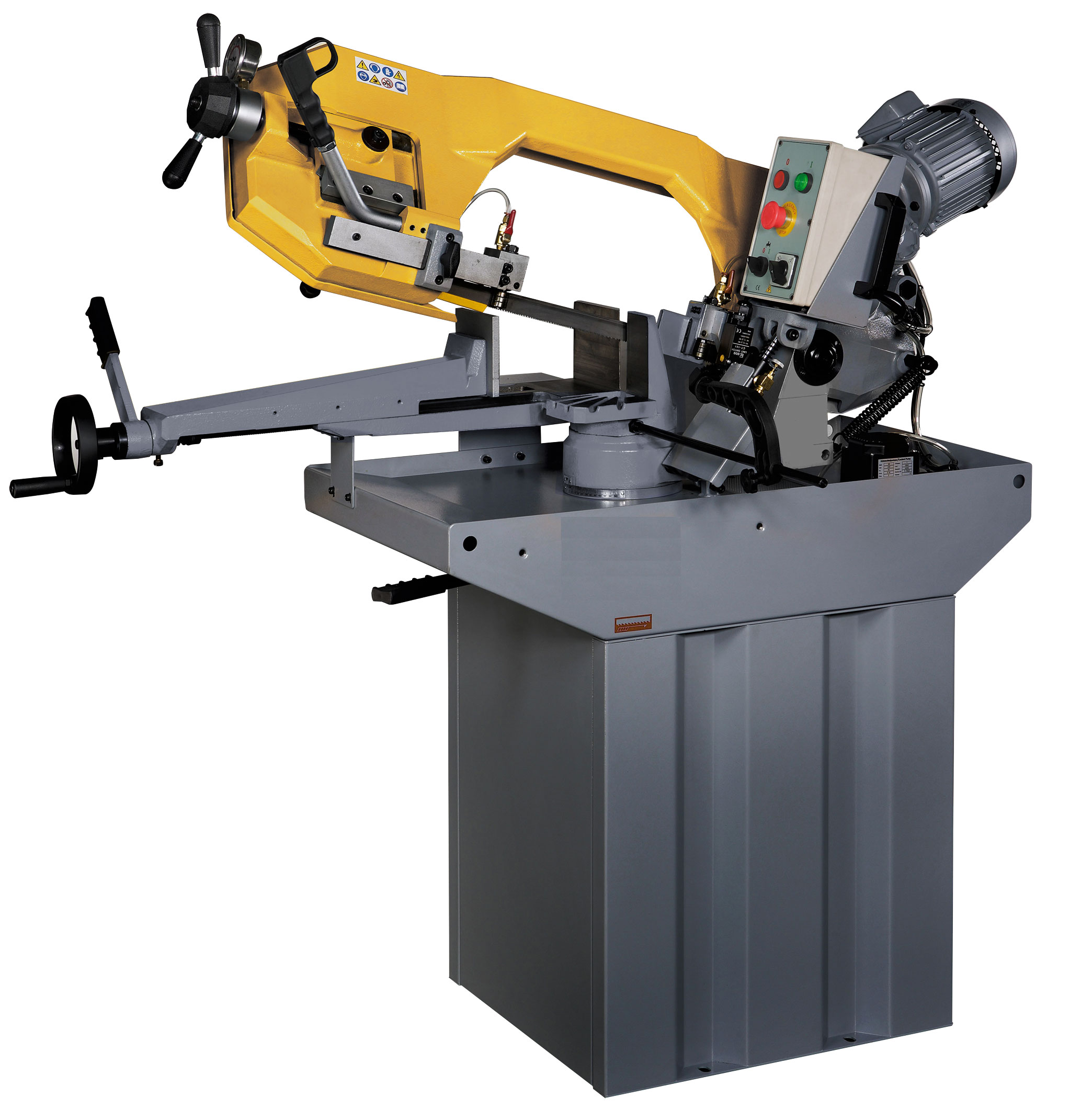 Tračna žaga ima vgrajeno hidravliko ter omogoča poljubno nastavljivo hitrost rezanja. Žagine lastnosti: Ojačana glava iz sive litine. Vertikalna rotacija gredi z regulativnimi koničnimi ležaji. Vgrajen inverter in specialen menjalnik za spreminjanje hitrosti rezila. Odlično zgrajen vztrajnik Močen rezilno vodilni sistem z ublažitvijo. Močen pritisk s hitro prilagoditvijo ob dotiku materiala. Varno zavarovan vztrajnik. Rezalna sposobnost mize na desni strani od 0° do 60°. Nastavljiv merilni sistem za reprodukcijo materialov iste velikosti. Majhna električna voltaža 24V. Električna pumpa za hladitev rezila.